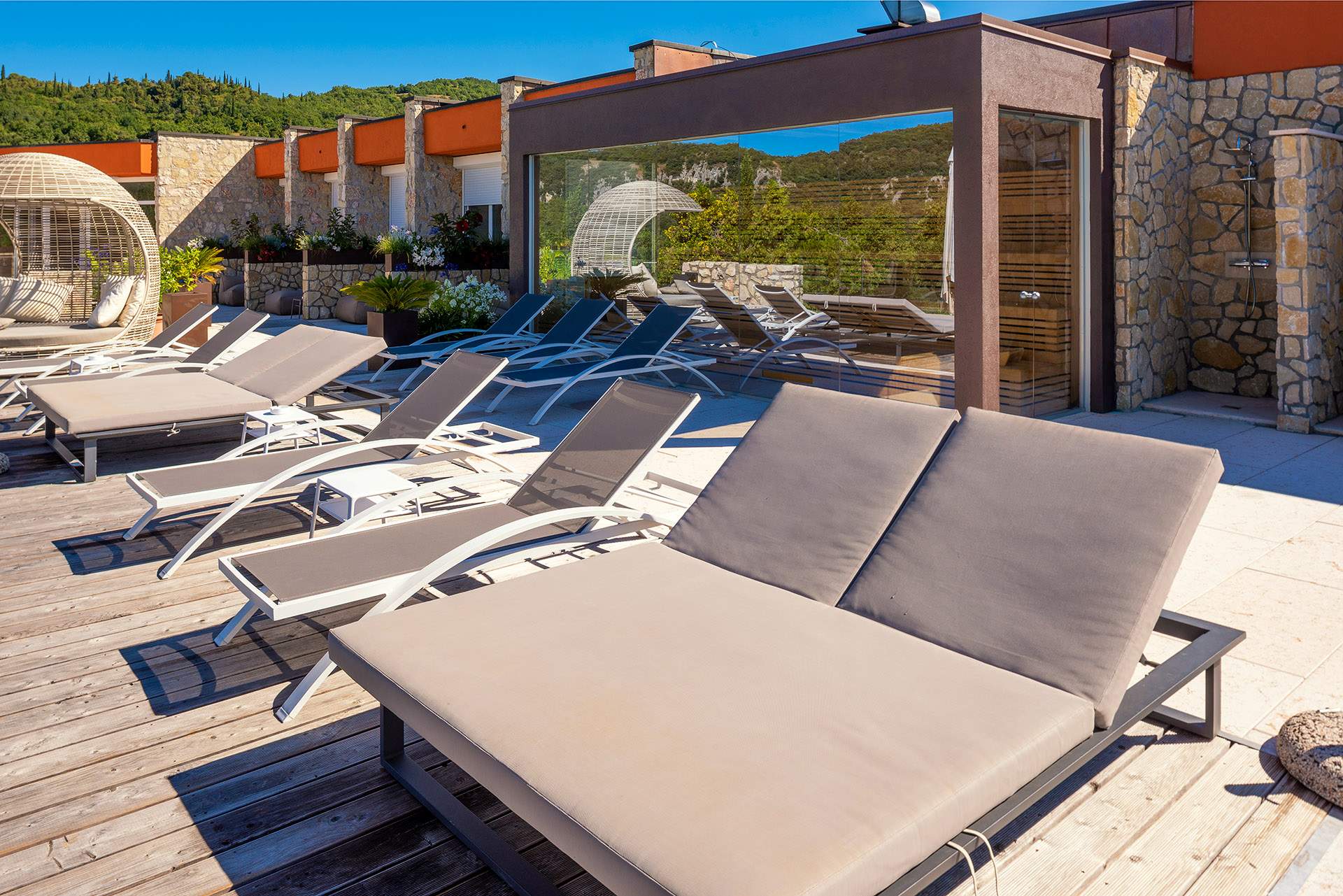 Chinber trasforma gli spazi esterni del tuo hotel in ambienti eleganti e funzionali, dove comfort e stile si incontrano. Offriamo tavoli e sedie per bar e aree spuntini, sdraio e lettini intorno alle piscine o sulle terrazze, e soluzioni su misura per ogni spazio esterno. I nostri arredi combinano design raffinato, materiali resistenti e finiture di qualità, pensati per resistere alle condizioni esterne senza rinunciare allo stile. Ogni elemento è studiato per creare aree conviviali e rilassanti, valorizzando l’esperienza degli ospiti e trasformando ogni momento all’aperto in un’occasione di comfort e piacere.