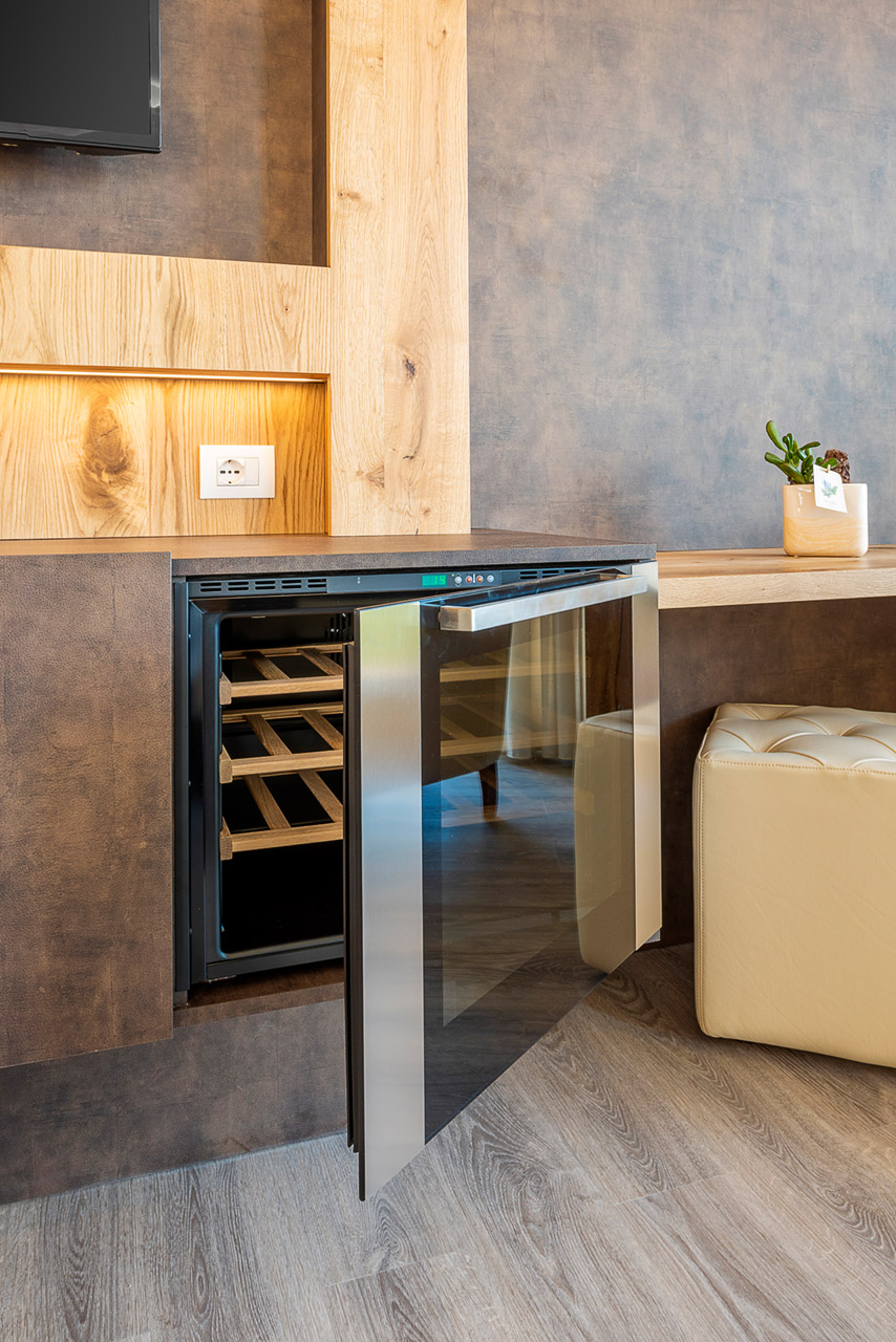 Le camere Garden del Golf Club Ca’ Degli Ulivi offrono un soggiorno all’insegna dell’eleganza e del relax, grazie agli arredi su misura realizzati da Chinber. Ogni ambiente è caratterizzato da mobili di design e dettagli in legno naturale, studiati per coniugare funzionalità, comfort e stile raffinato. Gli spazi interni, luminosi e armoniosi, si integrano perfettamente con la vista sul campo da golf e sulle aree verdi circostanti, creando un’atmosfera esclusiva.