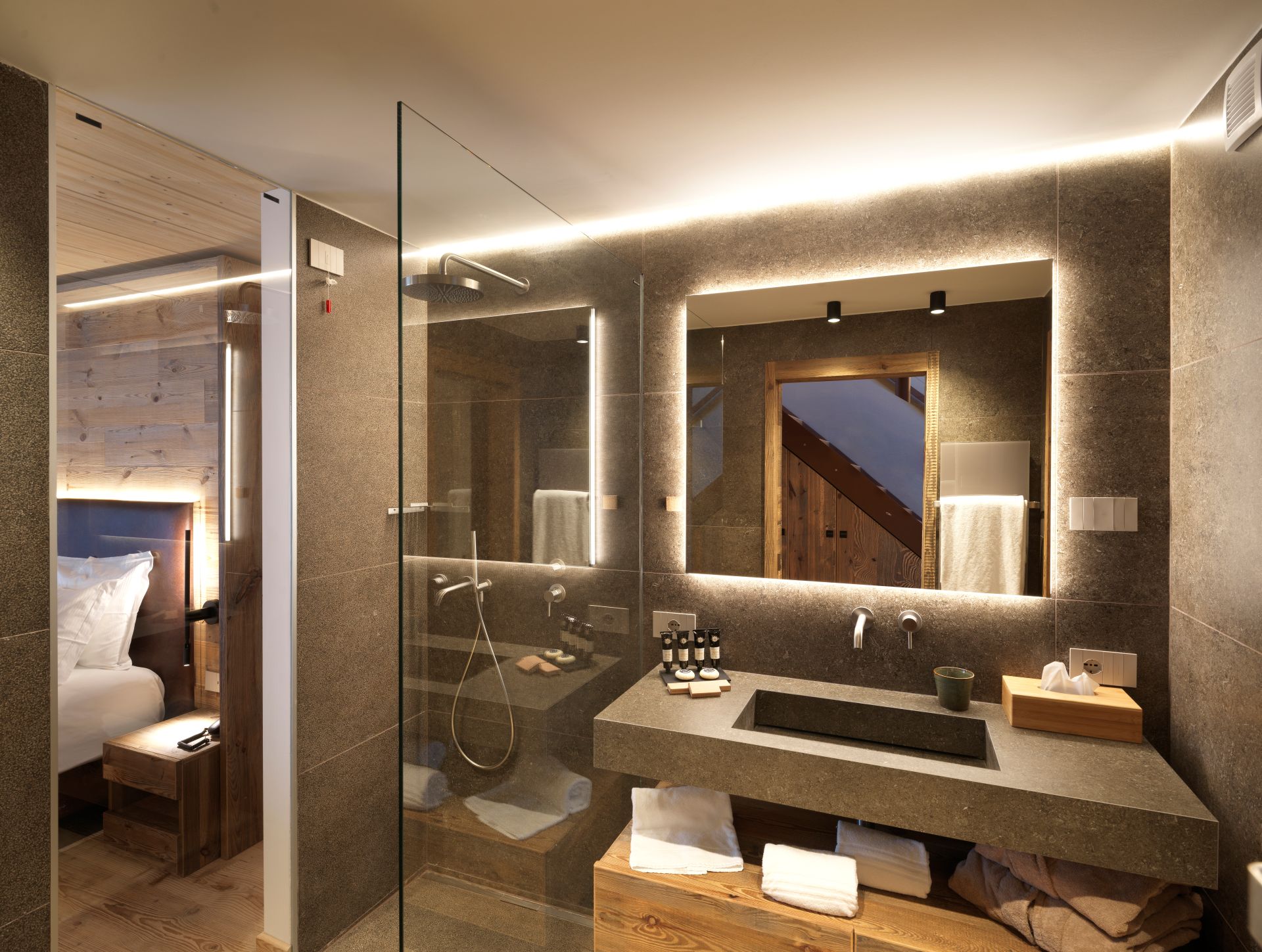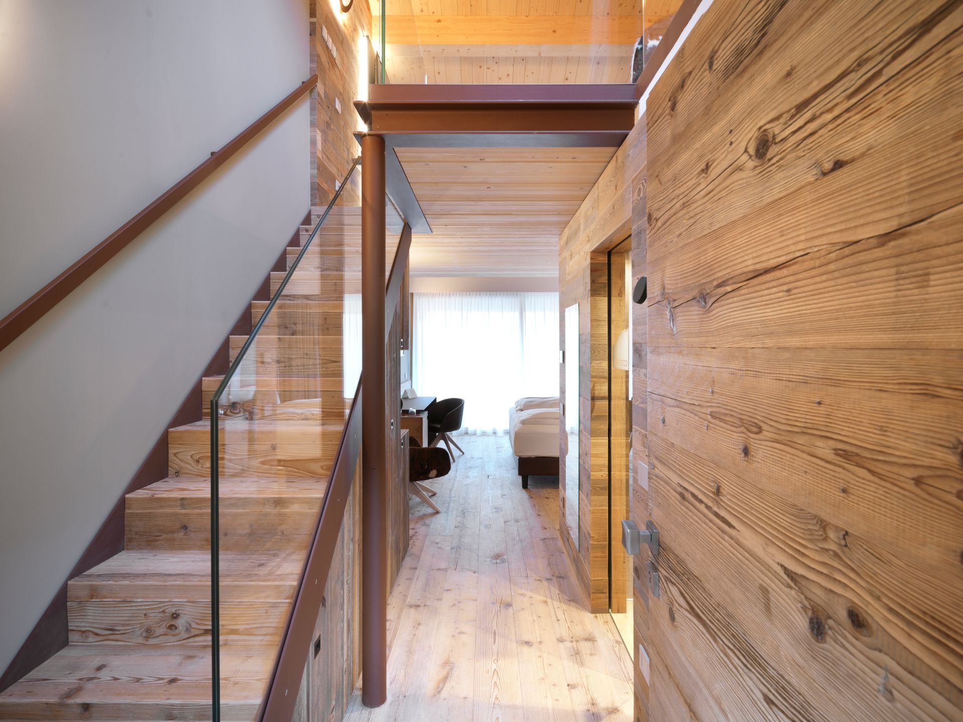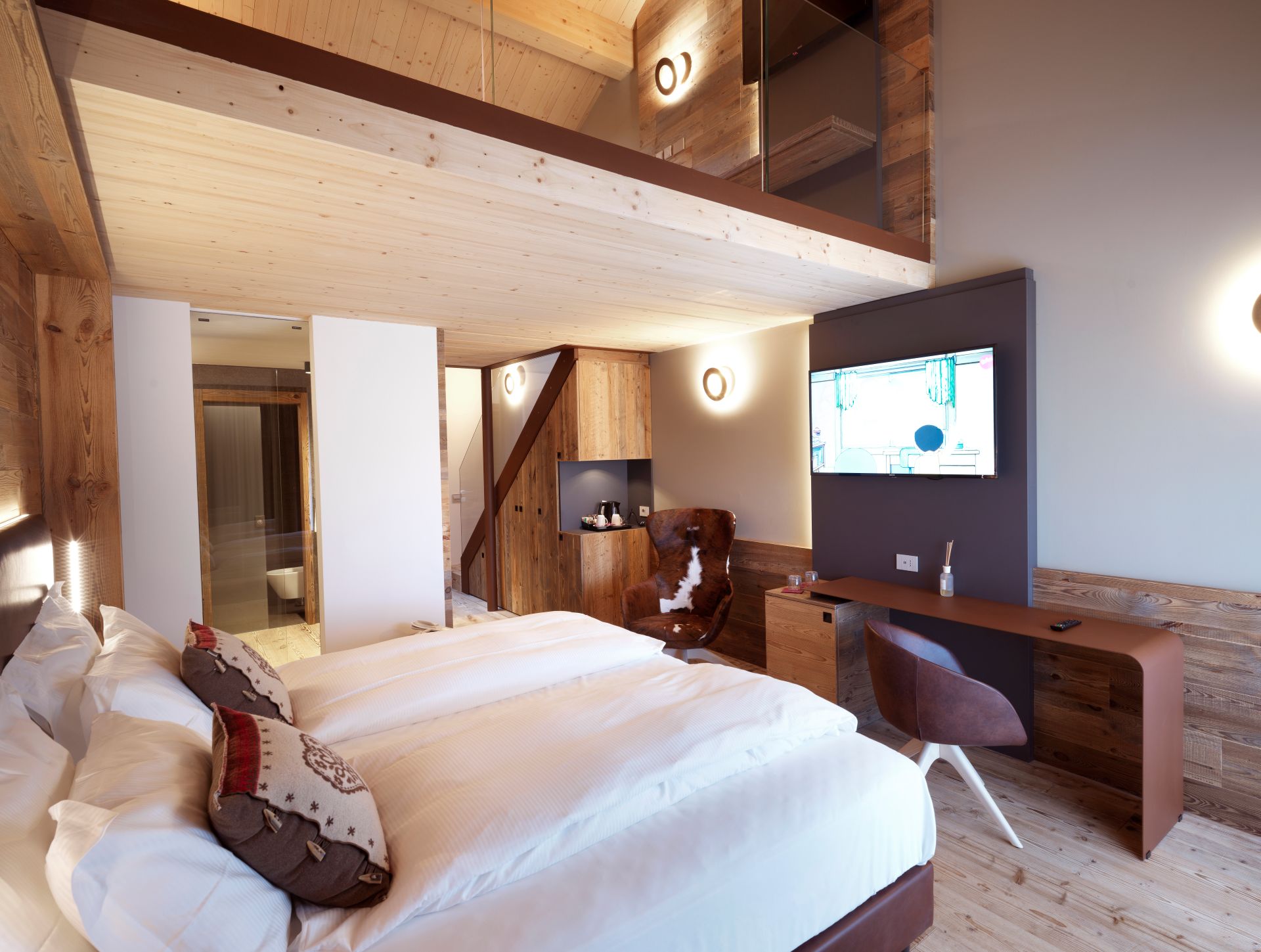 Questa raffinata suite su due piani offre un soggiorno esclusivo, con la zona notte al piano inferiore e ambienti eleganti di design al piano superiore, pensati per il relax e il piacere visivo. Gli arredi su misura combinano linee moderne e dettagli in materiali pregiati, creando un equilibrio perfetto tra comfort e stile. Ogni spazio è curato nei minimi dettagli: dai mobili ai complementi, tutto contribuisce a un’atmosfera armoniosa e sofisticata, per un soggiorno unico dove design, funzionalità e eleganza si fondono in un’esperienza indimenticabile.
