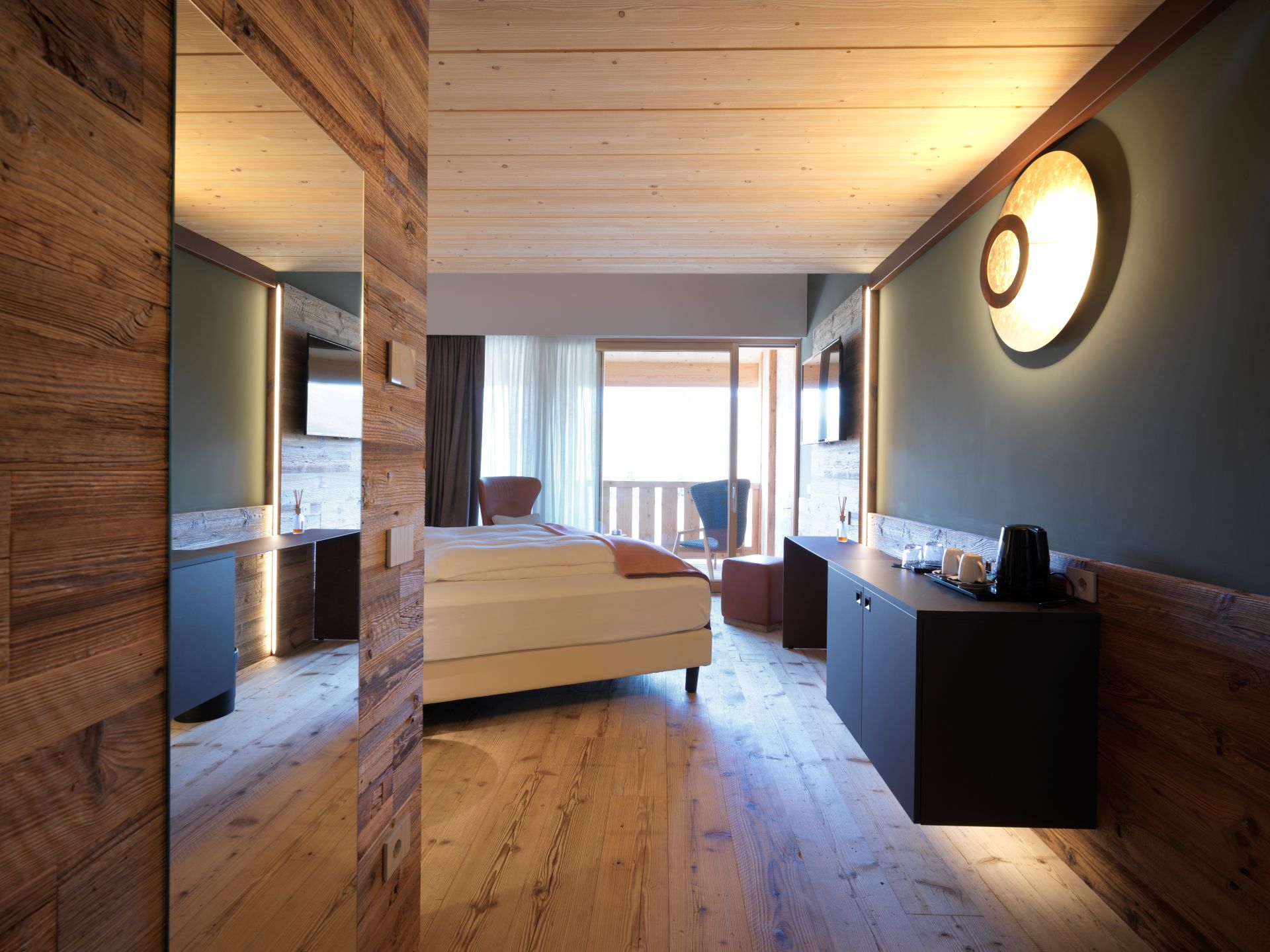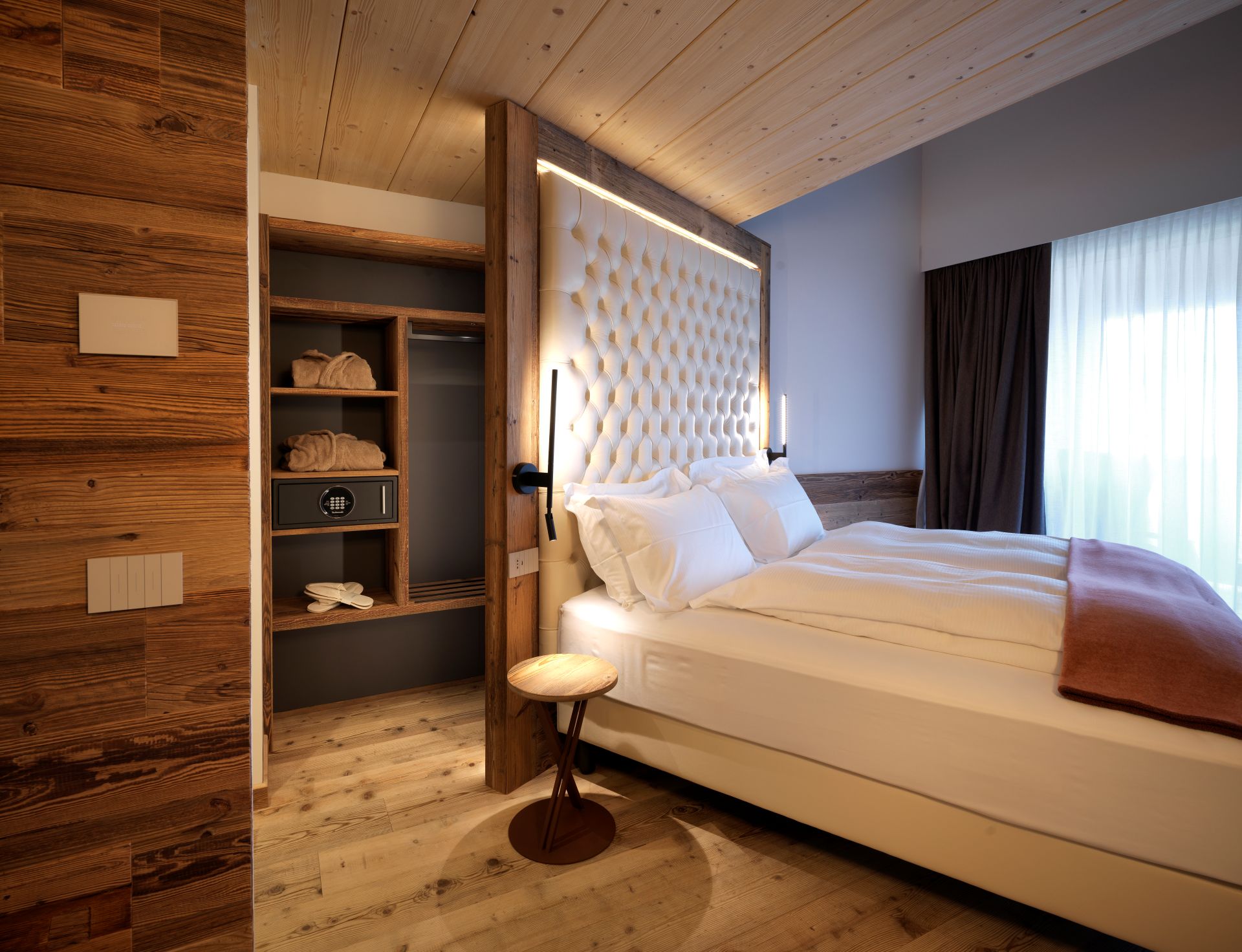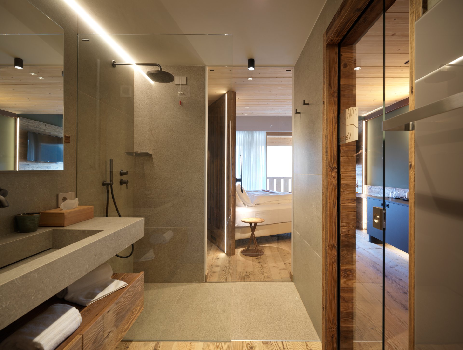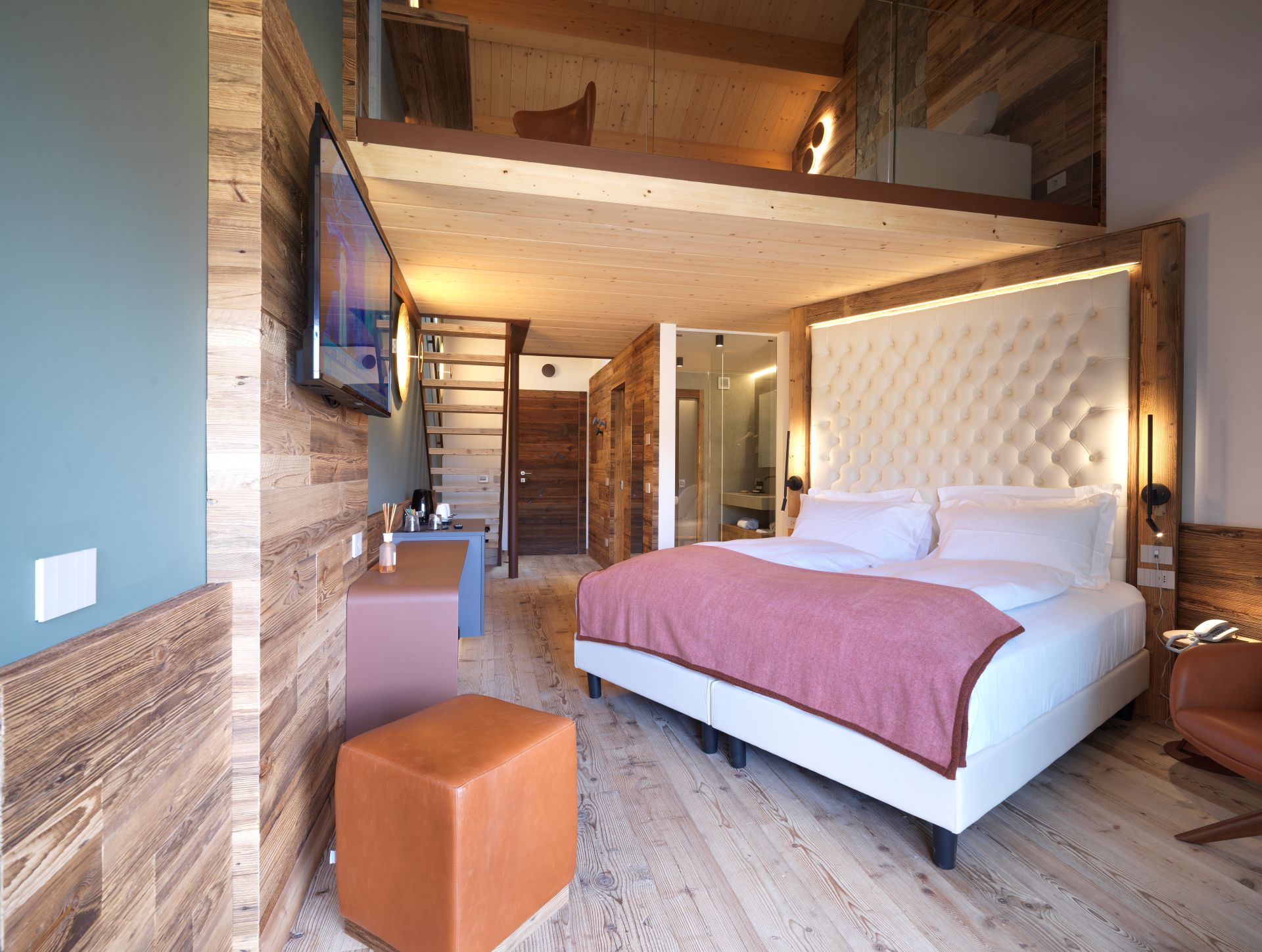 Questa suite esclusiva è progettata per sorprendere: al centro della stanza spicca un letto king size, simbolo di comfort e lusso, circondato da arredi contract realizzati su misura da Chinber. La combinazione di legno naturale e colori intensi dona carattere agli spazi, creando un ambiente elegante e contemporaneo, pensato per ospiti che cercano stile e funzionalità. Una palette cromatica calibrata e materiali di alta qualità trasformano la suite in un’esperienza immersiva, dove design, comfort e personalità si incontrano in ogni angolo.