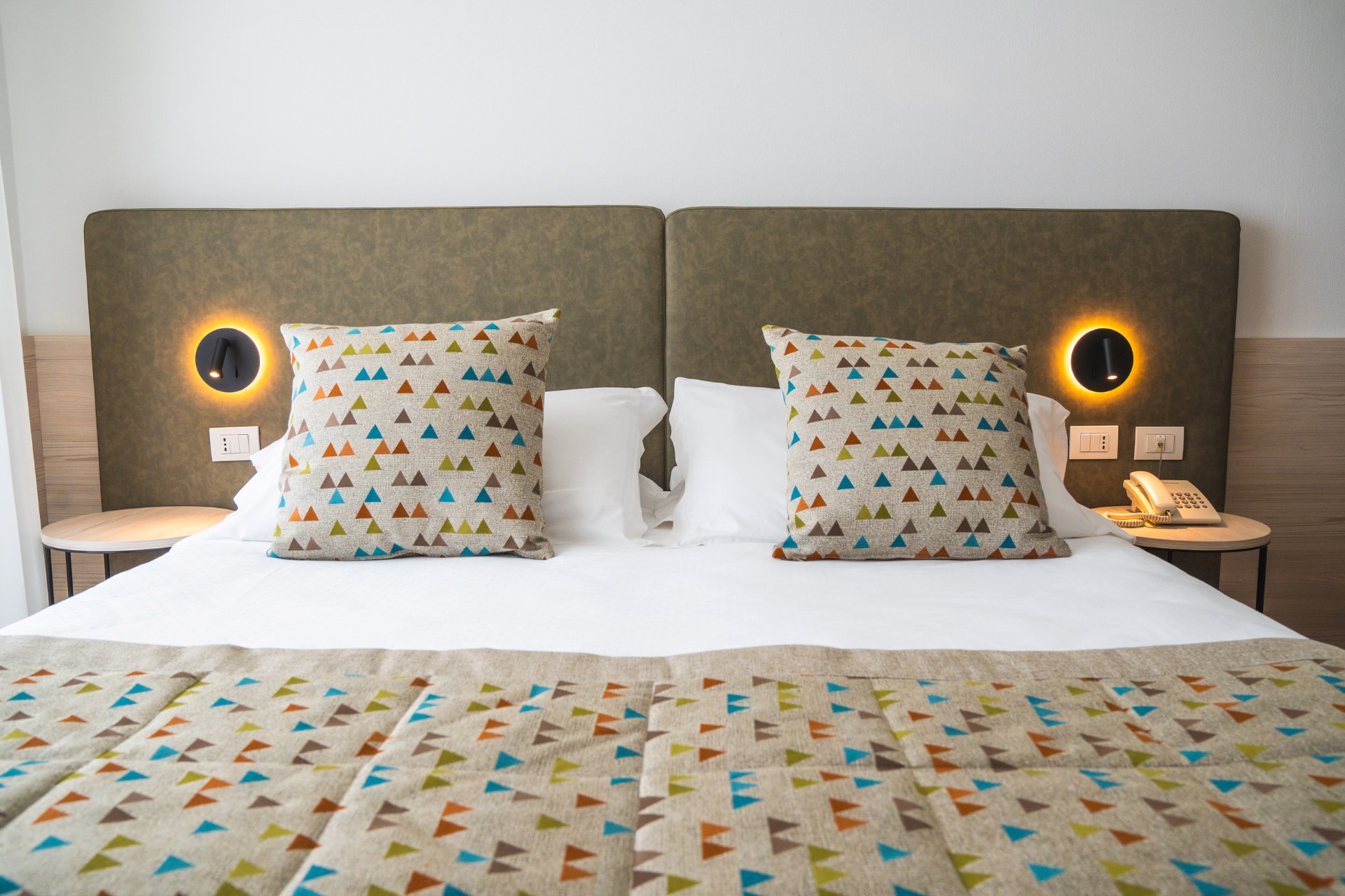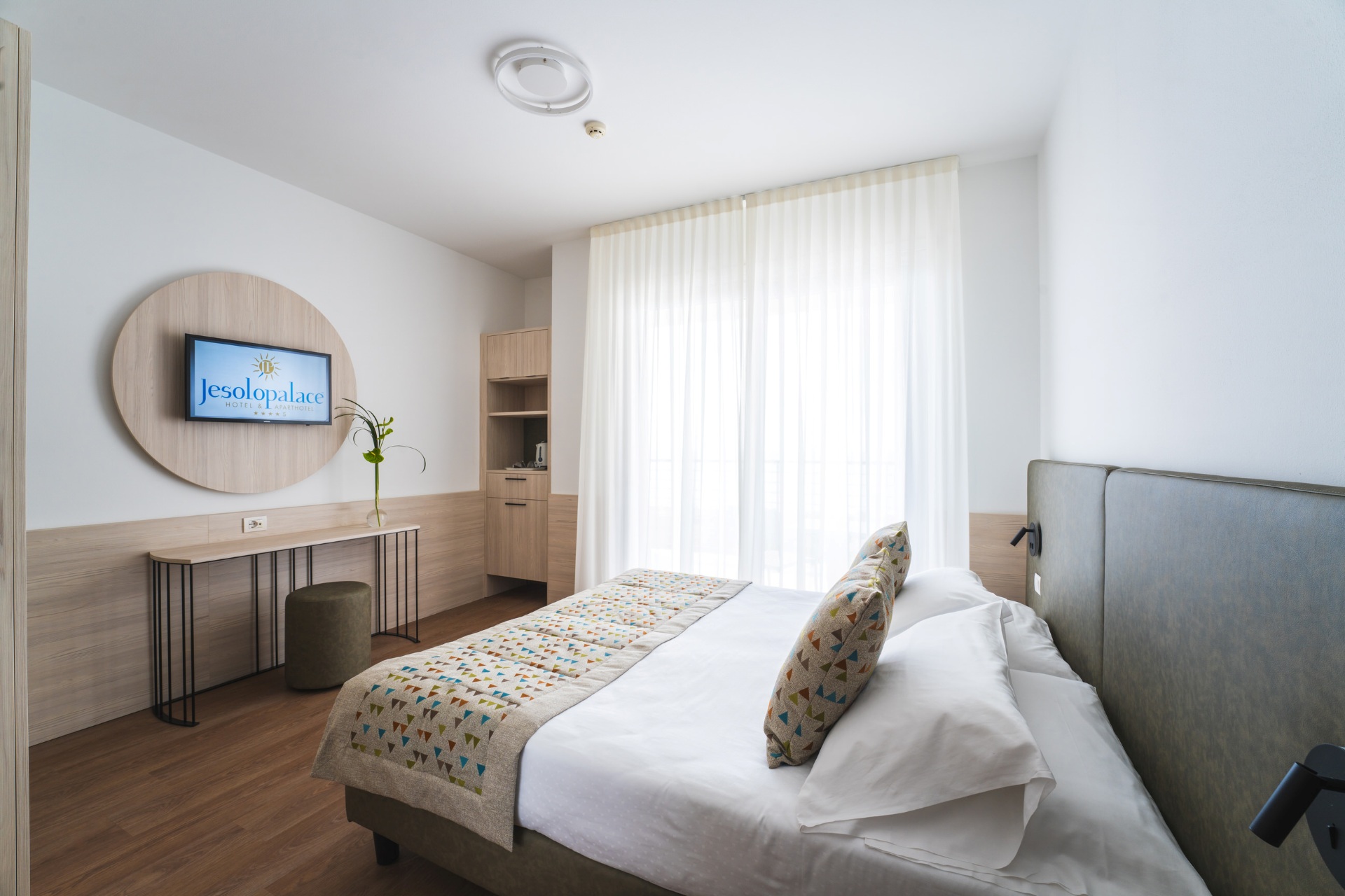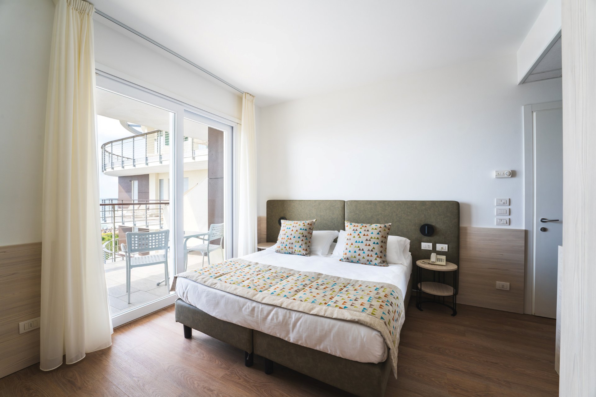 Le camere matrimoniali del nostro hotel a Jesolo uniscono eleganza, comfort e arredi su misura firmati Chinber.
