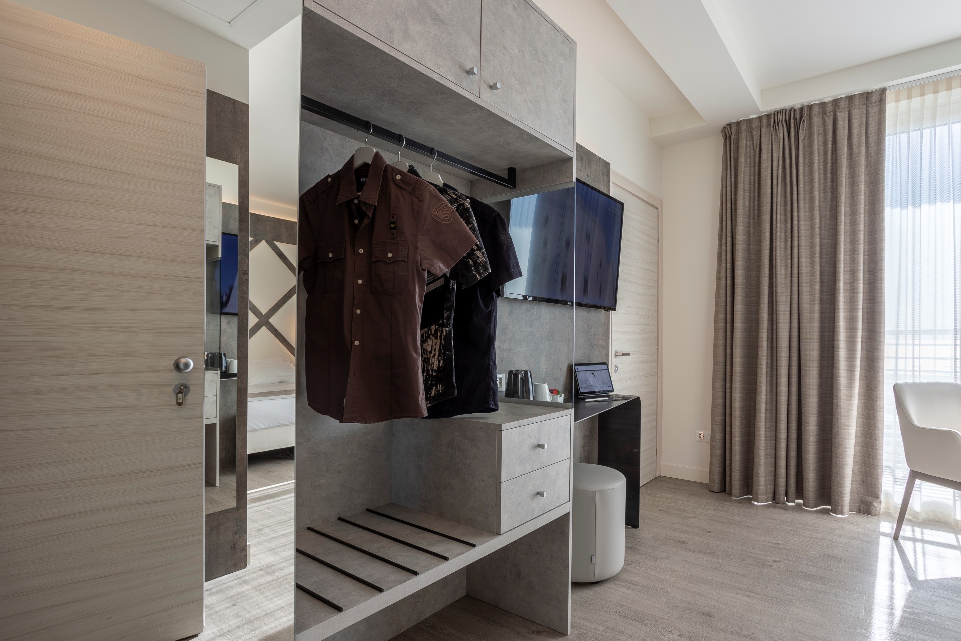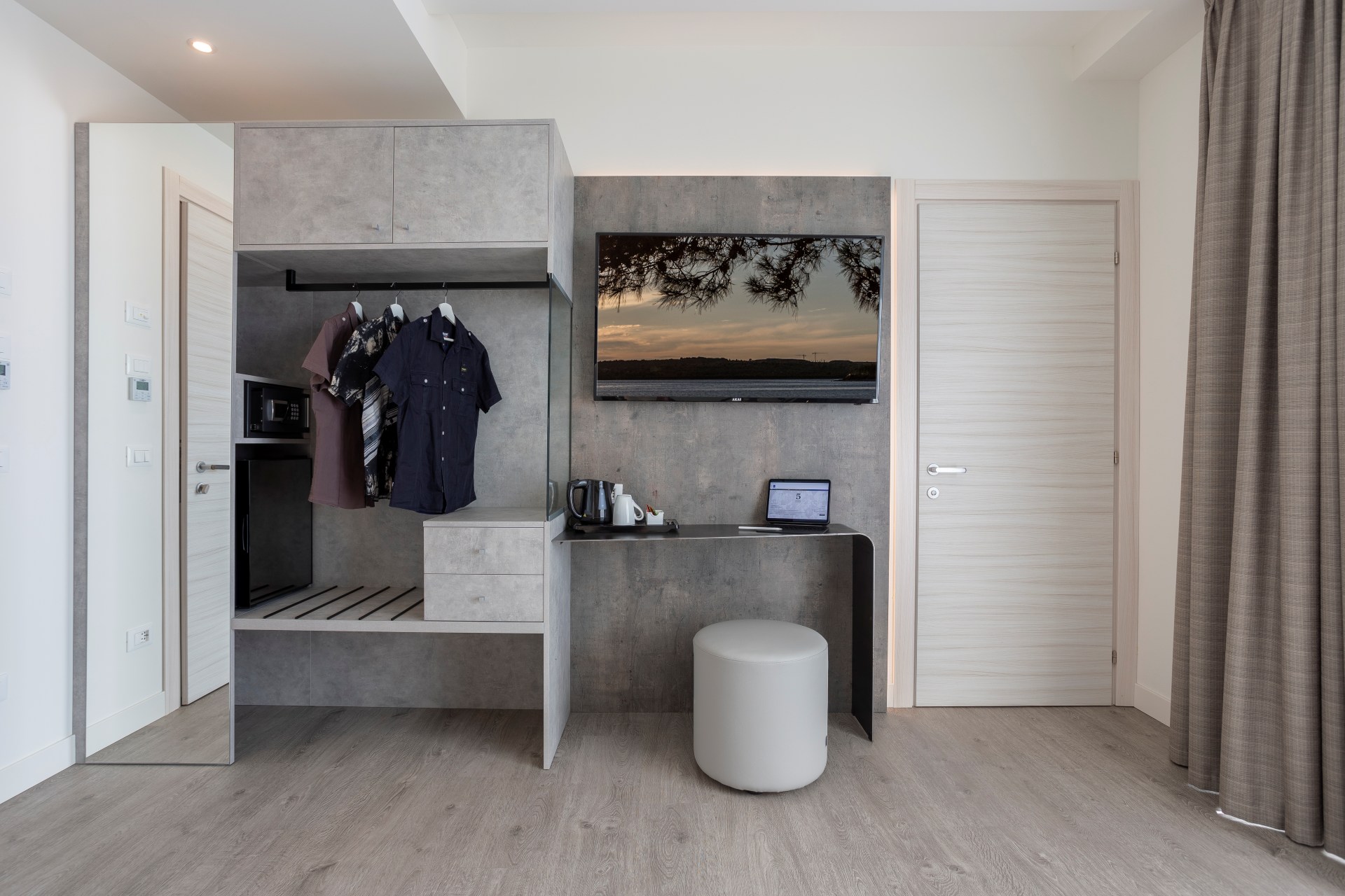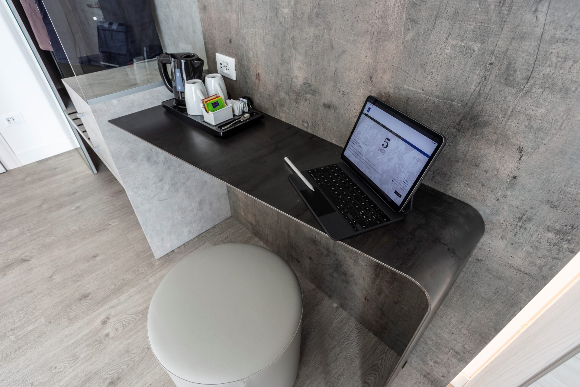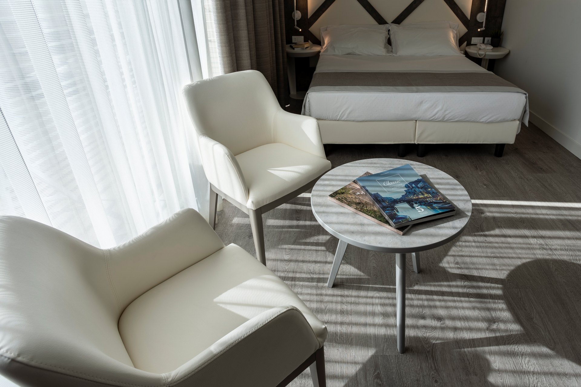 Gli arredi di design, impreziositi da eleganti dettagli in legno naturale, creano un ambiente caldo e raffinato che dialoga con la luce del mare.